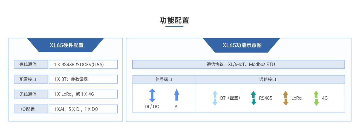 XL65采集模塊,用于監測點分散、數量少、供電不方便的場景。電池供電,變位、超限觸發功能,更適用于變送儀表信號、開關接點信號采集。