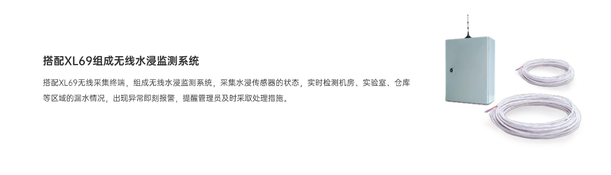 XLSWL水浸傳感器,是專門為了檢測機房、實驗室、倉庫等區域漏水位置而研發,可快速檢測到漏水位置。當發生漏水時,XLSWL水浸傳感器將信號傳輸至XL69無線采集終端,進行數據處理,將報警信號及定位數據上傳至監控平臺,以便工作人員及時消除現場隱患,避免發生重大事故和損失。