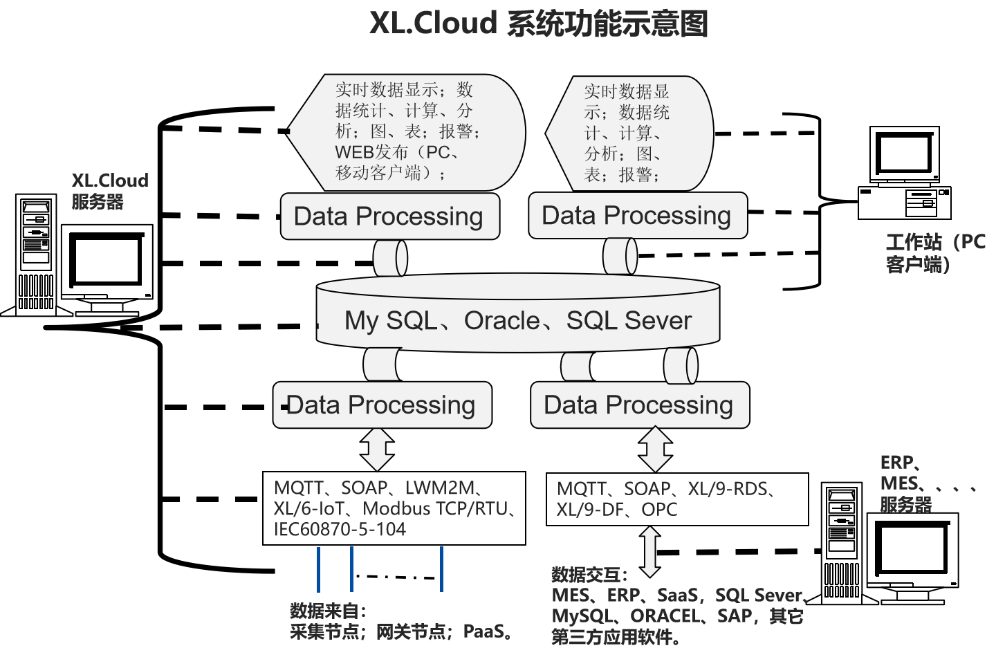 支持MQTT、LWM2M、SOAP,XL/6-IoT、XL/9-DB、XL/9-RDS,等等通信協議,并可和第三方數據庫,Oracle、SAP等交換數據