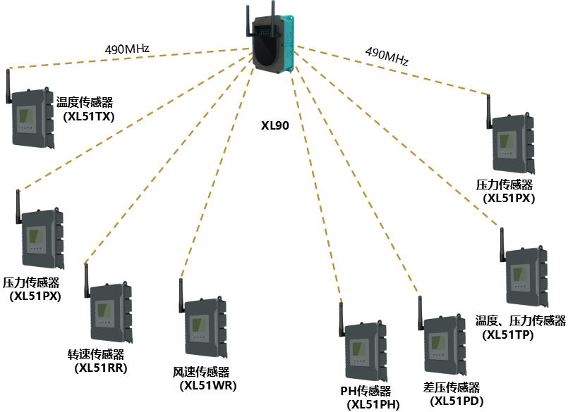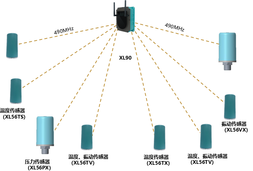 1臺XL90物聯網關,構建兩個獨立的LoRa通訊網絡,可接入64(理論上不受限制)臺智能傳感器