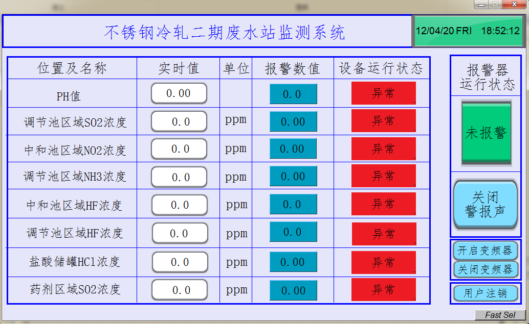 圖2 廢水站監(jiān)測(cè)系統(tǒng)主界面