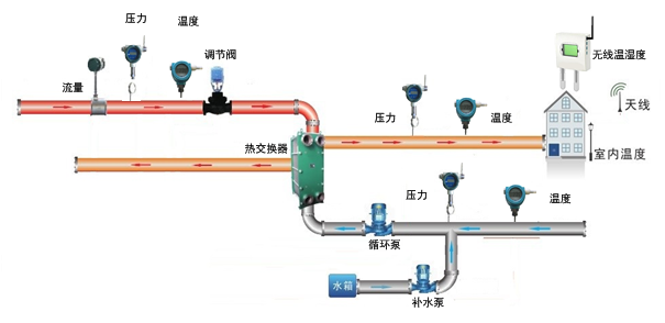 2、實(shí)時(shí)采集管網(wǎng)壓力、流量、溫度、流速、用戶(hù)用熱環(huán)境溫度等數(shù)據(jù),并利用無(wú)線傳輸網(wǎng)絡(luò)進(jìn)行傳輸匯集。