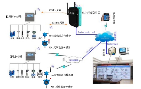 2、傳輸層:傳輸層主要有物聯(lián)網(wǎng)關(guān)、無(wú)線采集裝置、無(wú)線壓力變送器、無(wú)線溫度傳感器、NB、4G、射頻無(wú)線傳輸網(wǎng)絡(luò)組成。