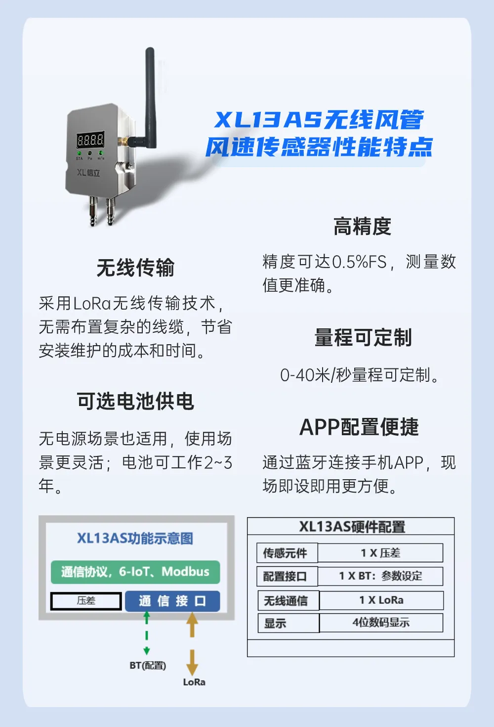 選擇XL13AS無線風管風速傳感器,對當前風速實時監(jiān)測。帶顯示,現(xiàn)場可直觀了解當前風速。
